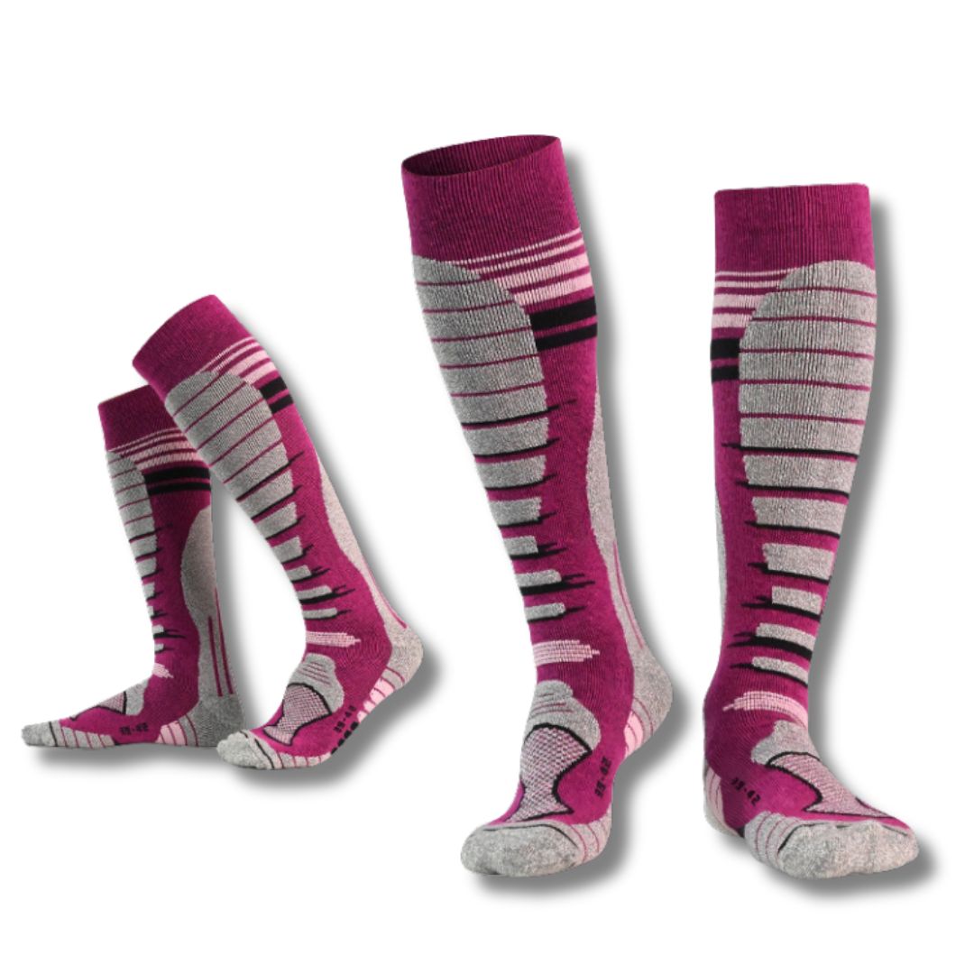 В сочетании с синтетическими волокнами такие носки обеспечивают прочность, эластичность и достаточную фиксацию голенища и стопы — особенно важные зоны при использовании высоких горнолыжных ботинок. При этом содержание мериноса около 30 % позволяет носку иметь технические характеристики — не быть слишком толстым, не мешать плотной посадке ботинка, но сохранять комфорт и тепло.